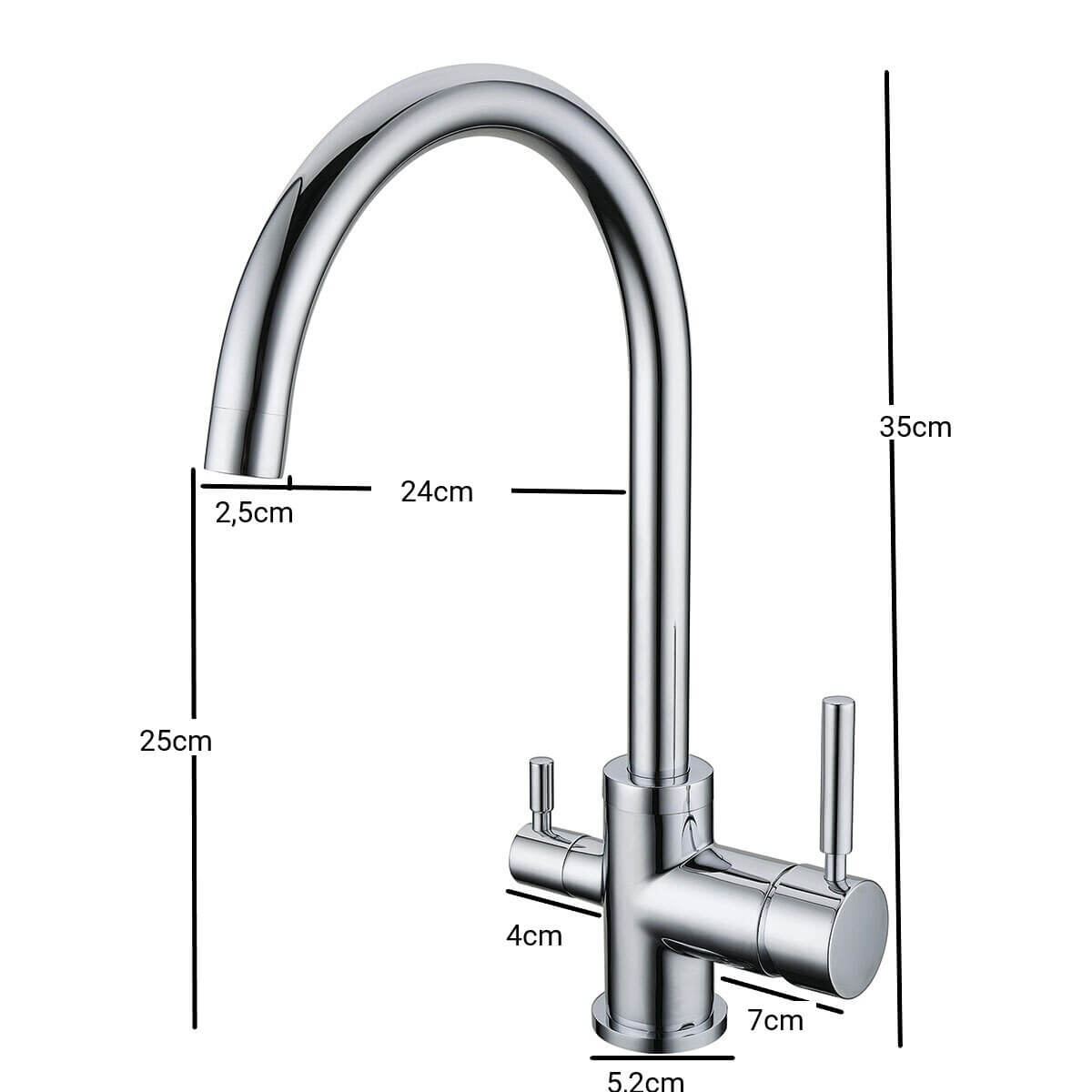 Der große Vorteil dieser 3-Wege-Armatur: In Kombination mit einer Osmoseanlage benötigst du nur noch einen einzigen Wasserhahn. Es sind keine zusätzlichen Anpassungen in der Arbeitsplatte nötig, was die Installation erheblich vereinfacht. Alle Teile, die für den Einbau erforderlich sind, sind bereits im Lieferumfang enthalten.