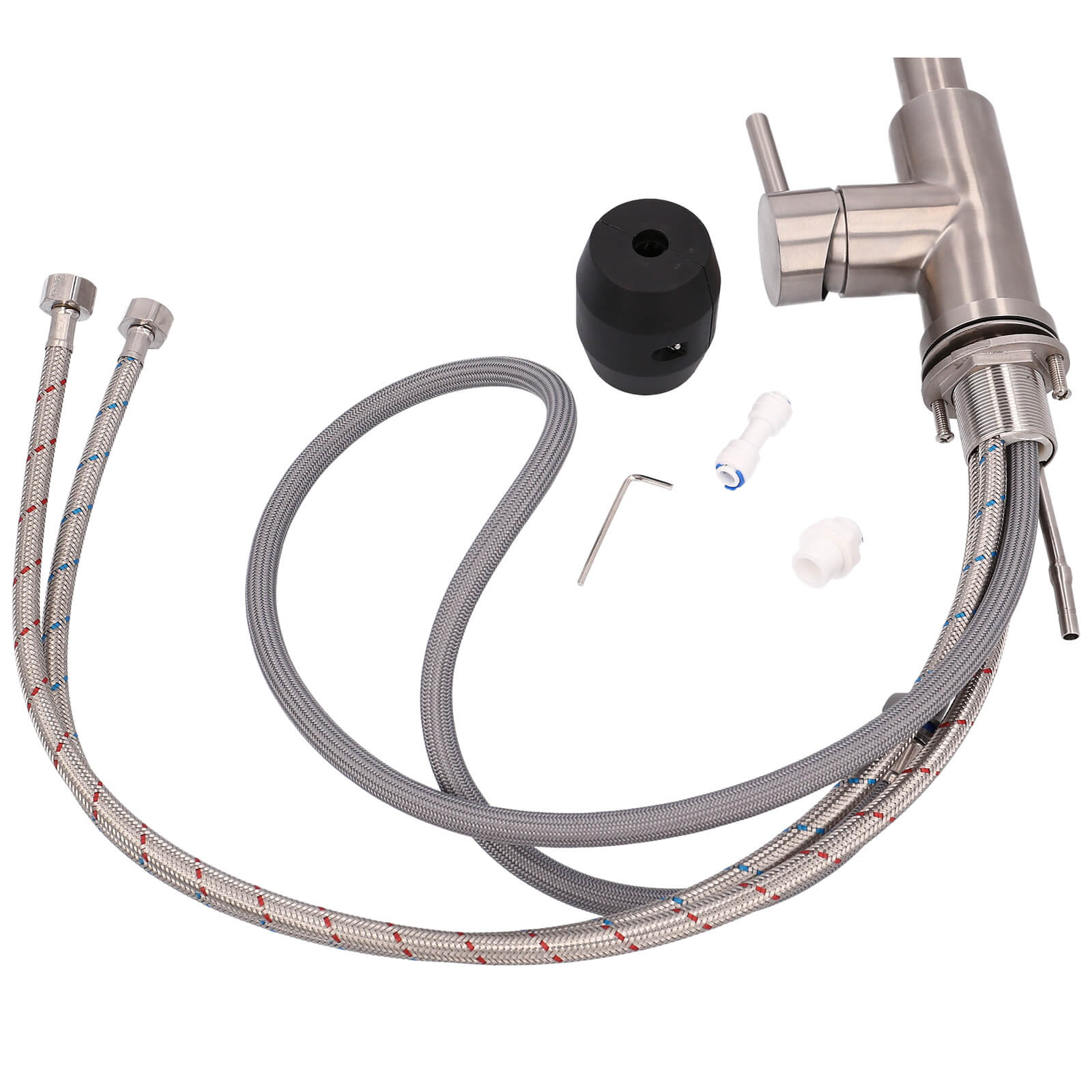Toller Wasserhahn, hatten auch zuvor einen ähnlichen (aber nur ohne Osmoseanschluss) und muss gestehen, obwohl der vorherige eine Namenhafte Firma war, kann dieser locker mithalten bzw. eher berreichern. Es sollte aufjedenfall darauf geachtet werden, dass der Wasserhahn zu der passenden Osmoseanlage kompatibel ist