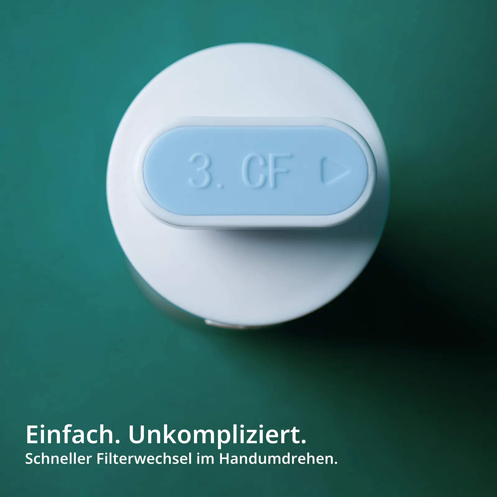 Dank des innovativen Quick-Change-Systems lässt sich der Filter im Handumdrehen austauschen – sauber, schnell und unkompliziert.