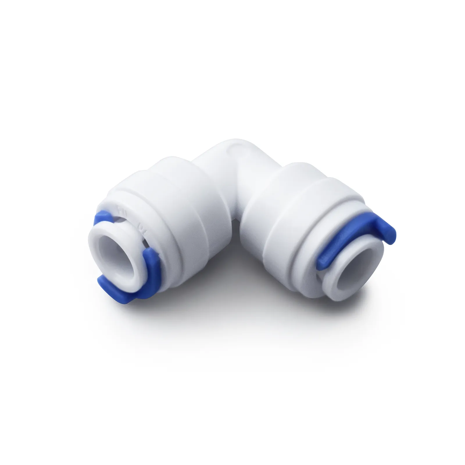 Mit diesem Winkel können Sie zwei 1/4"-Schläuche sicher miteinander verbinden – ideal, um beispielsweise Schläuche für zwei Filter in einer Umkehrosmoseanlage zu koppeln. Die präzise Konstruktion garantiert eine zuverlässige Verbindung und einen reibungslosen Wasserfluss.