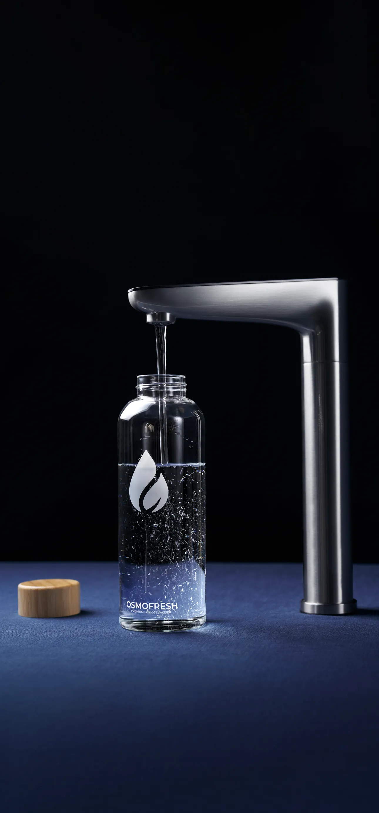 Die Osmose-Technologie ist ein bewährtes physikalisches Verfahren, mit dem du dein Leitungswasser zuverlässig von nahezu allen unerwünschten Stoffen befreist. Mithilfe von Druck und einer Membran werden selbst kleinste Partikel wie Viren, Bakterien, Medikamentenrückstände, Kalk, Fluor, Pestizide, Nitrat, Nitrit, Blei und sogar PFAS-Verbindungen effektiv aus dem Wasser gefiltert -für sauberes und sicheres Trinkwasser direkt aus deiner FlowOne+ Osmoseanlage. Und weil reines Wasser allein noch nicht alles ist, sorgt die FlowOne+ im nächsten Schritt dafür, dass es auch richtig gut schmeckt. Unsere 5-Stufen-Filtertechnologie entfernt nicht nur Schadstoffe, sondern sorgt auch durch den Aktivkohle Nachfilter für einen frischen Geschmack.