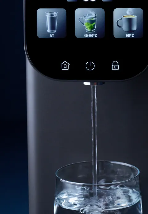 Ebenfalls ressourcenschonend: die integrierte Heißwasserfunktion. Sie erhitzt nur so viel Wasser, wie tatsächlich benötigt wird, ganz ohne Vorheizen und ohne unnötigen Energieverlust wie etwa bei einem klassischen Wasserkocher. Das spart Strom und sorgt für heißes Wasser auf Knopfdruck, genau in der gewünschten Menge und Temperatur.