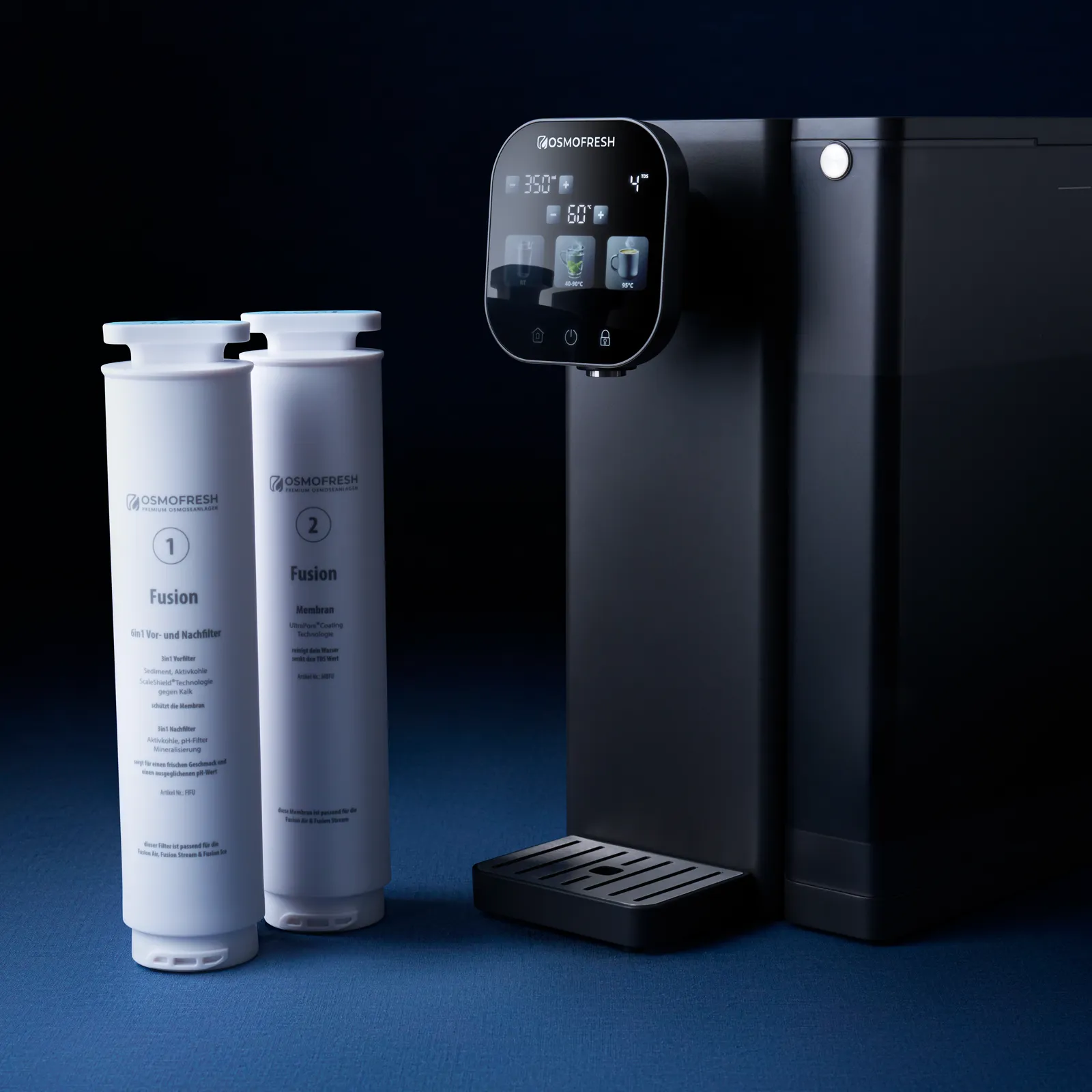 Deshalb haben wir alles, was ihr an unseren Auftisch Anlagen liebt, genommen und noch besser gemacht. Das Ergebnis seht ihr nun mit unserer neuen Fusion Reihe. Kompakter, schneller, intuitiver und bereit für alles, was du von einer modernen Auftisch Osmoseanlage erwartest. Ein frischer Look, smartere Bedienung und noch mehr Komfort auf Knopfdruck.