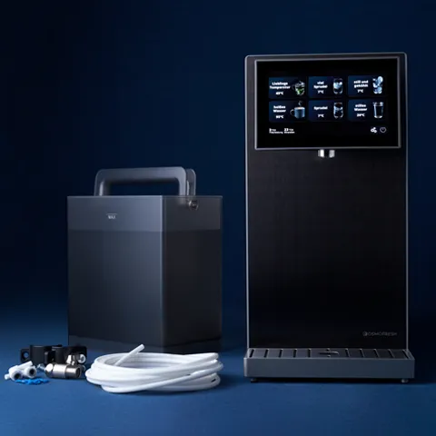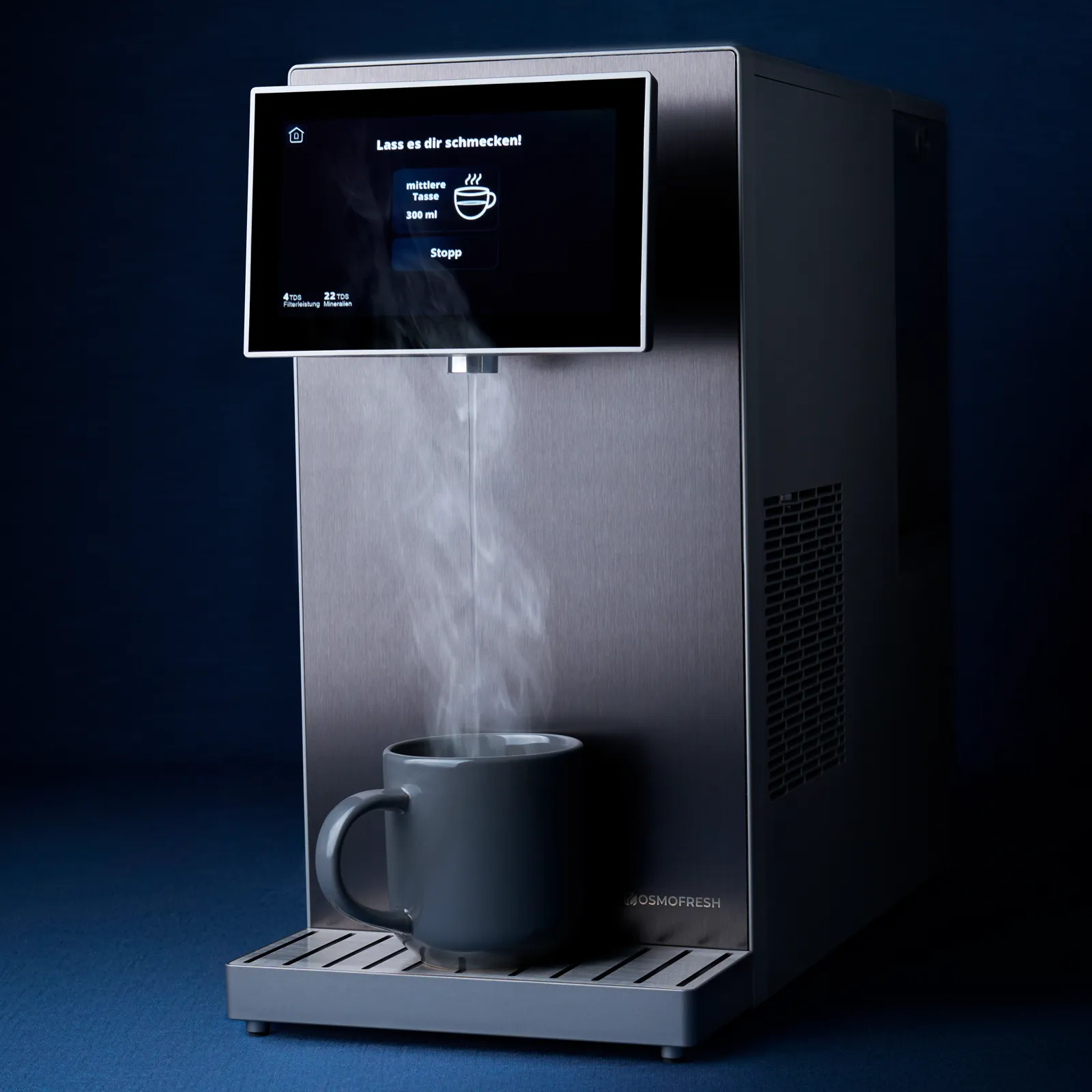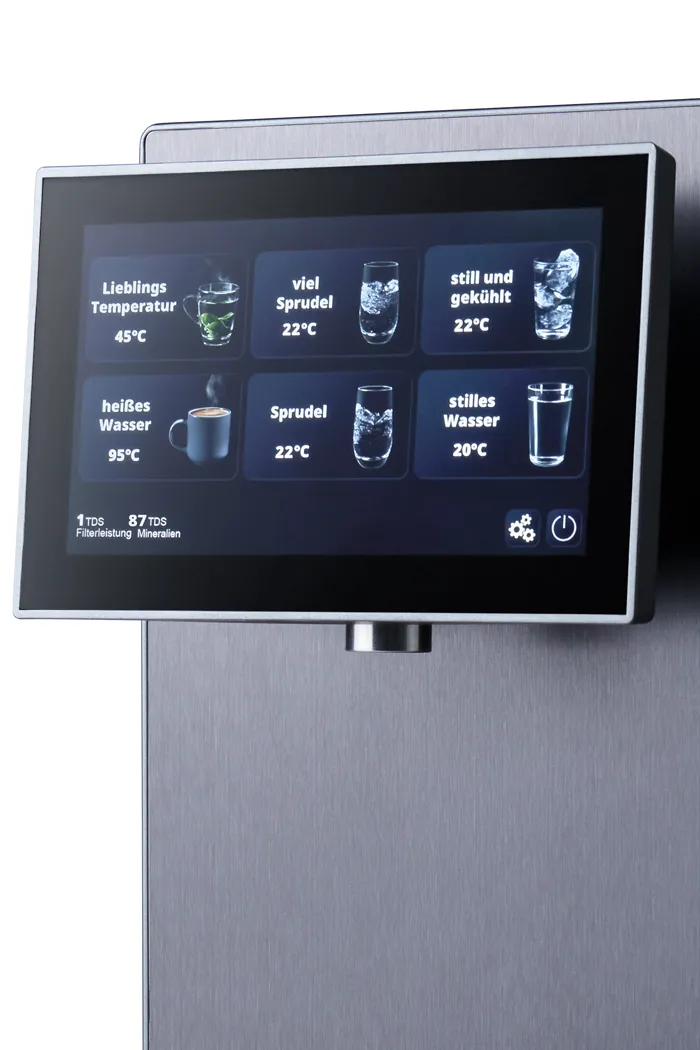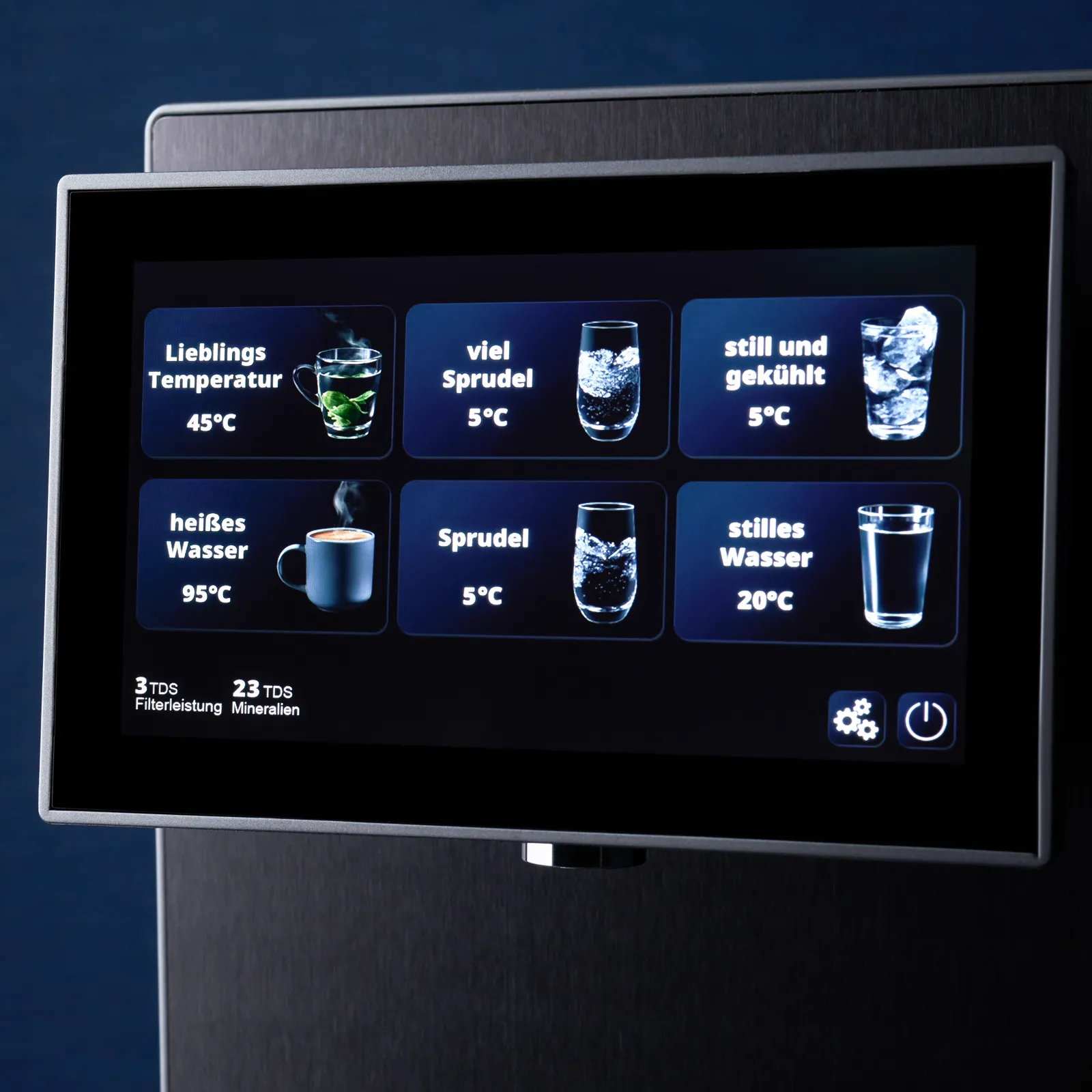 Warum entscheiden, wenn du alles haben kannst? Unsere neueste FusionPro bringt erstmals Sprudel, gekühltes und heißes Wasser – alles aus einer einzigen Anlage, auf Knopfdruck und ohne Kompromisse. Dabei passt sie sich flexibel an deine Gegebenheiten an: Nutze sie mit Tank oder schließe sie direkt an die Wasserleitung an.