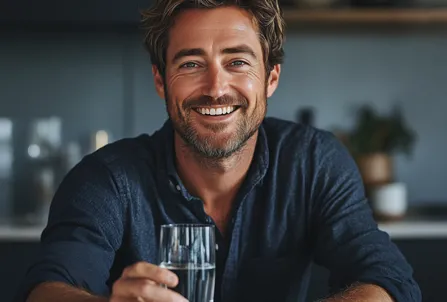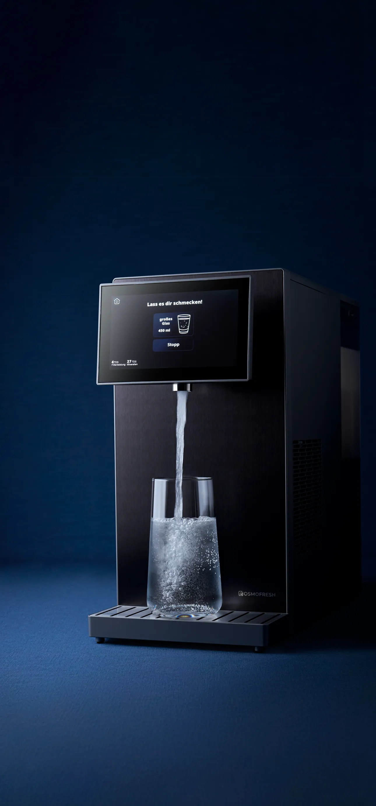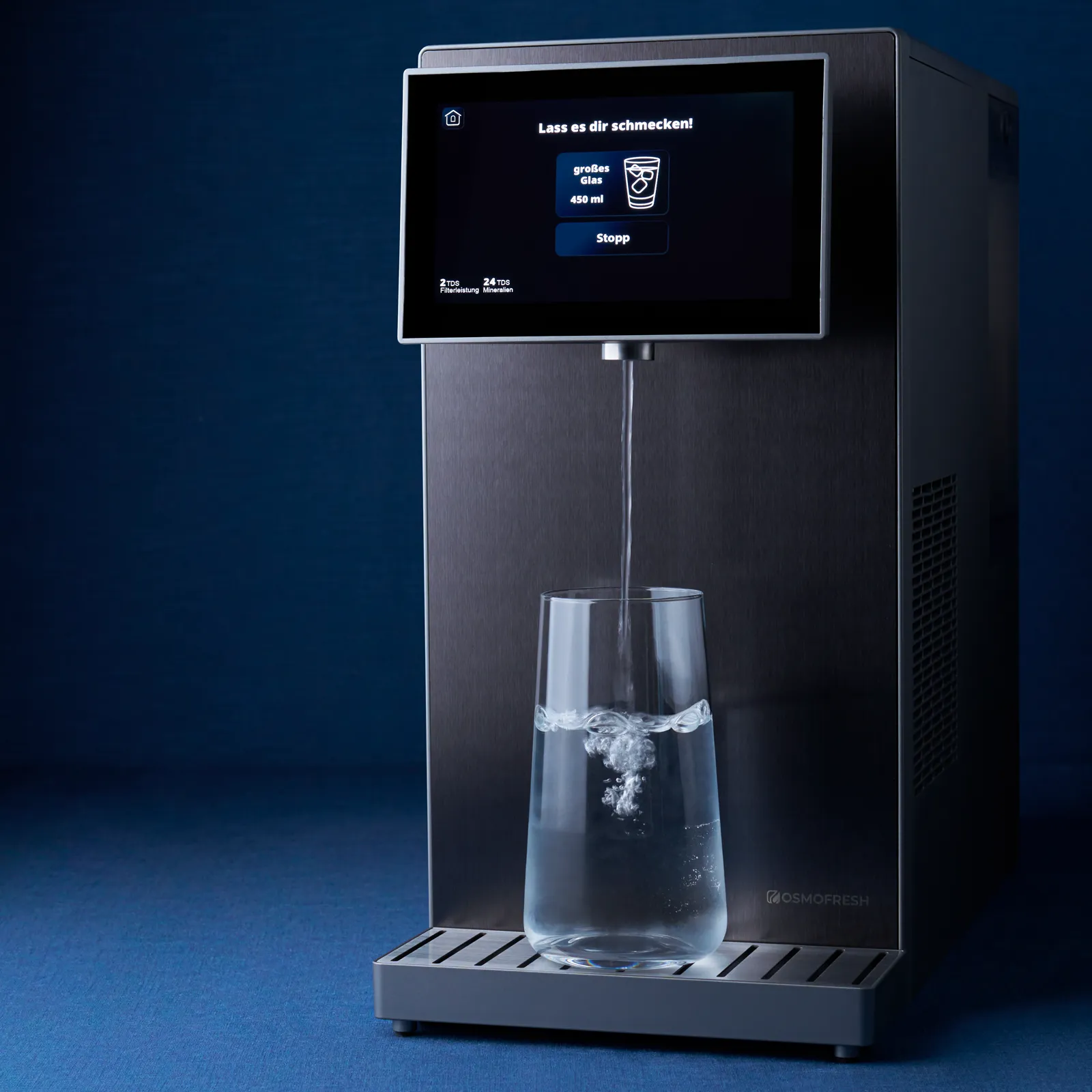 Die Osmose-Technologie ist ein bewährtes physikalisches Verfahren, mit dem du dein Leitungswasser zuverlässig von nahezu allen unerwünschten Stoffen befreist. Mithilfe von Druck und einer Membran werden selbst kleinste Partikel wie Viren, Bakterien, Medikamentenrückstände, Kalk, Fluor, Pestizide, Nitrat, Nitrit, Blei und sogar PFAS-Verbindungen effektiv aus dem Wasser gefiltert -für sauberes und sicheres Trinkwasser direkt aus deiner sicheres Trinkwasser direkt aus deiner Fusion Pro Osmoseanlage. Und weil reines Wasser allein noch nicht alles ist, sorgt die sicheres Trinkwasser direkt aus deiner Fusion Pro im nächsten Schritt dafür, dass es auch richtig gut schmeckt. Unsere 7-Stufen-Filtertechnologie entfernt nicht nur Schadstoffe, sondern reichert dein Wasser anschließend wieder mit wichtigen Mineralien an, für ein rundum harmonisches Geschmackserlebnis.