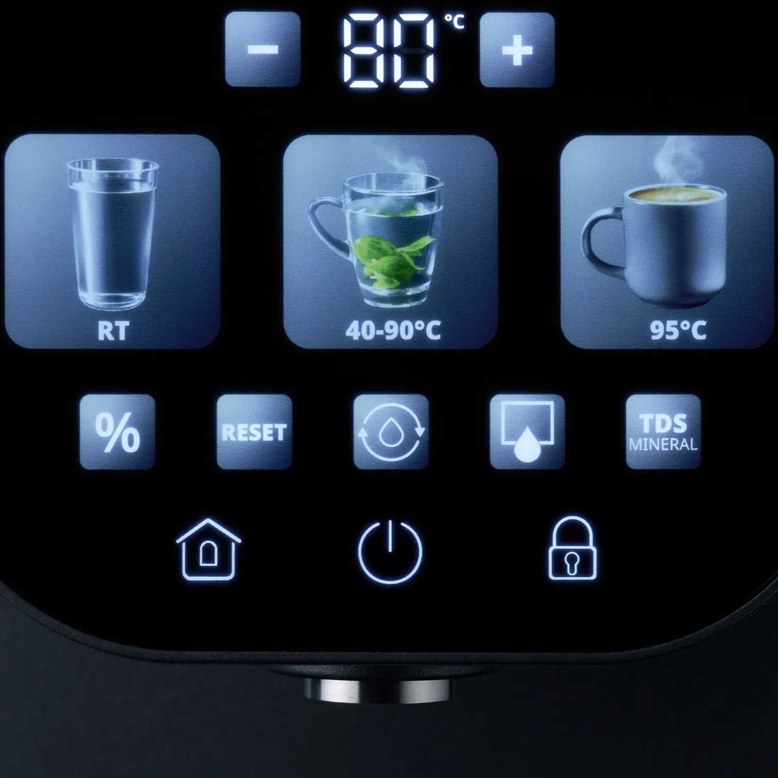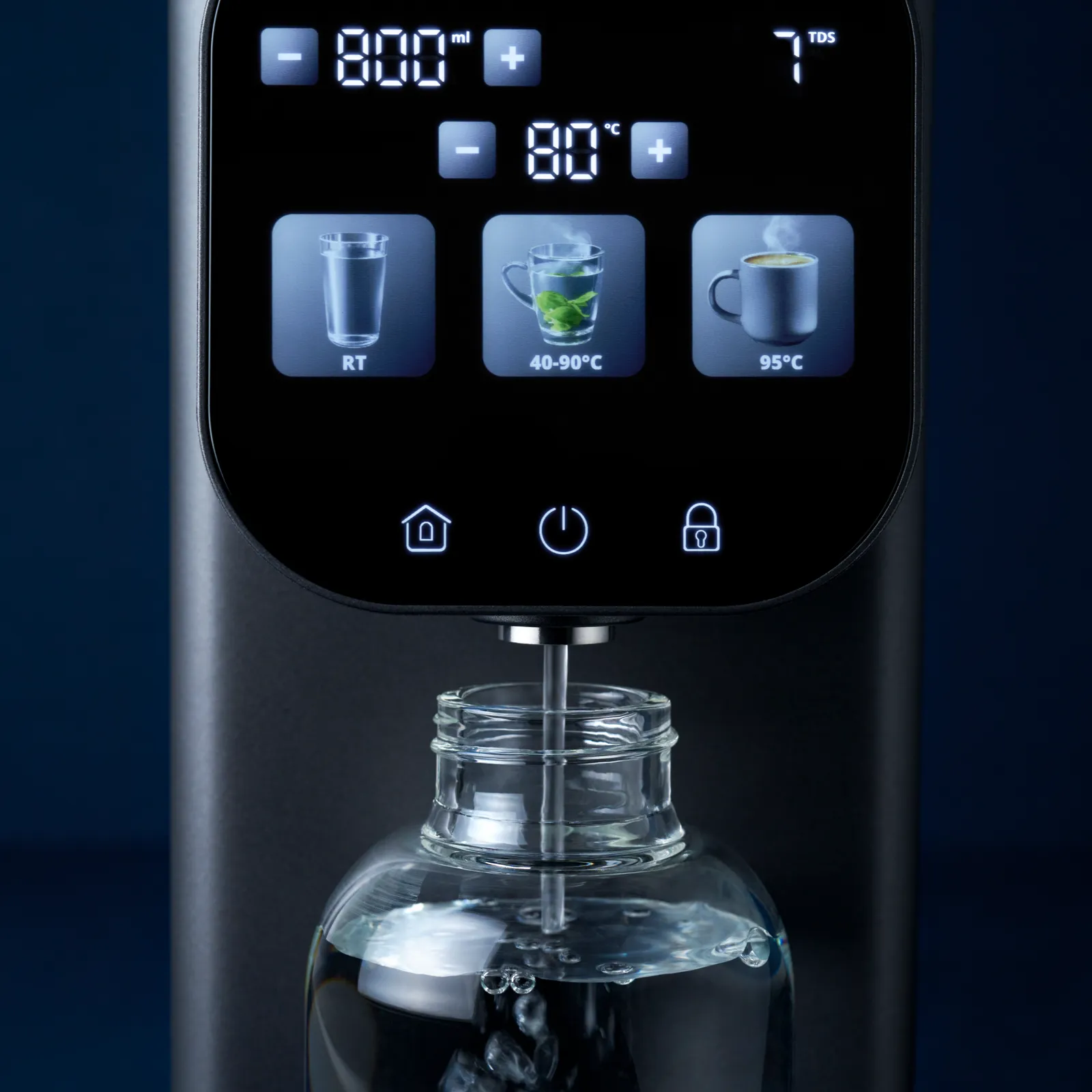 Ebenfalls ressourcenschonend: die integrierte Heißwasserfunktion. Sie erhitzt nur so viel Wasser, wie tatsächlich benötigt wird, ganz ohne Vorheizen und ohne unnötigen Energieverlust wie etwa bei einem klassischen Wasserkocher. Das spart Strom und sorgt für heißes Wasser auf Knopfdruck, genau in der gewünschten Menge und Temperatur.