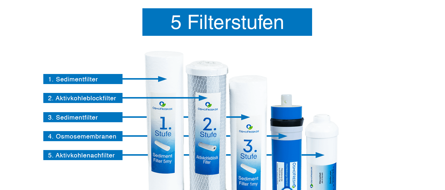 Der Aktivkohlenachfilter enthält Aktivkohleteilchen, welche aus speziellen Kokosnussschalen gewonnen werden. Er sorgt für einen ausgewogenen Geschmack und eine angenehme Frische des Osmosewassers.
