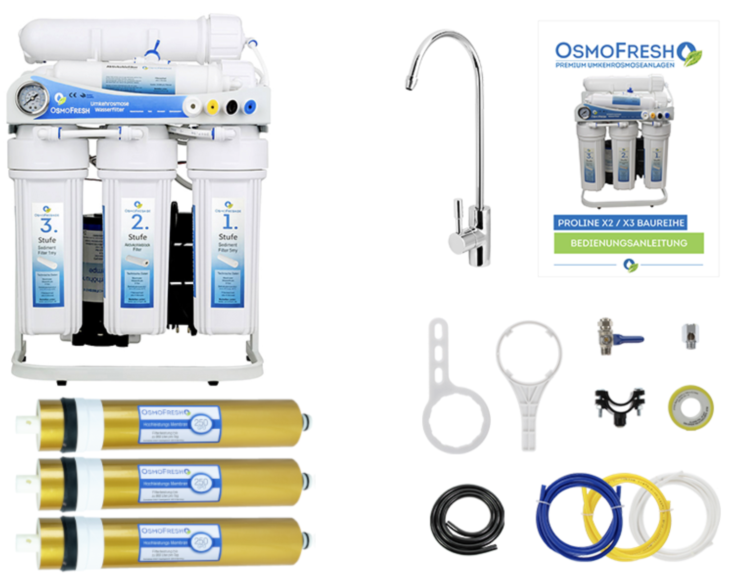 Die Proline X3 - 750 GPD arbeitet nun seit ca 1 Woche in der Küche unter der Spüle und macht einen hervoragenden Job. Der Durchfluss mit 1.8L/min ist für uns alle ausreichend schnell und das Wasser schmeckt allen sehr gut egal ob zum Kochen, für Kaffee, Tee oder pur zum trinken. Ich kann diese Maschine gut empfehlen da auch Filter zum nachkaufen in einer guten Preis / Leistung stehen. Die mitgelieferte Anleitung ist verständlich & es wird gut mit Bilder erklärt, wie Installation, Inbetriebnahme & Wartung handzuhaben sind. Über die Langlebigkeit kann ich noch nix sagen, bei Gelegenheit werde ich das machen. Der Service von Osmofresh ist im übrigen auch sehr gut, ein Rückmeldung auf Anfragen in der Regel am folgenden Tag je nachdem wann man schreibt..