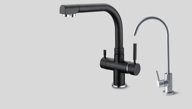 Die Flow2 ist eine leitungsgebundene Untertisch-Osmoseanlage, die direkt unter der Spüle installiert und an die Wasserleitung angeschlossen wird. Das gefilterte Osmosewasser entnimmst du entweder über den Edelstahl Osmosehahn der neben deinem bestehenden Küchenhahn montiert wird, oder mit einer 3-Wege-Armatur.