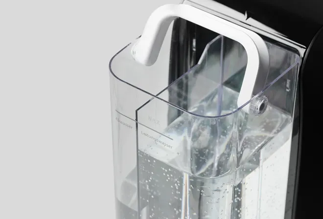 Die Quella Pro ist der Nachfolger der Quella Life und zeichnet sich z.b. durch einen höheren Edelstahlauslass, einstellbare Wassermengen und ein optimiertes Display aus.