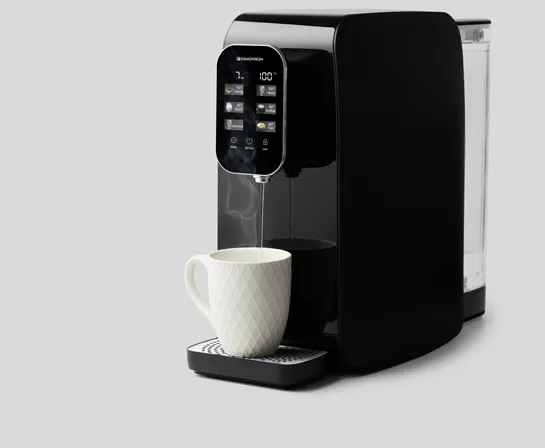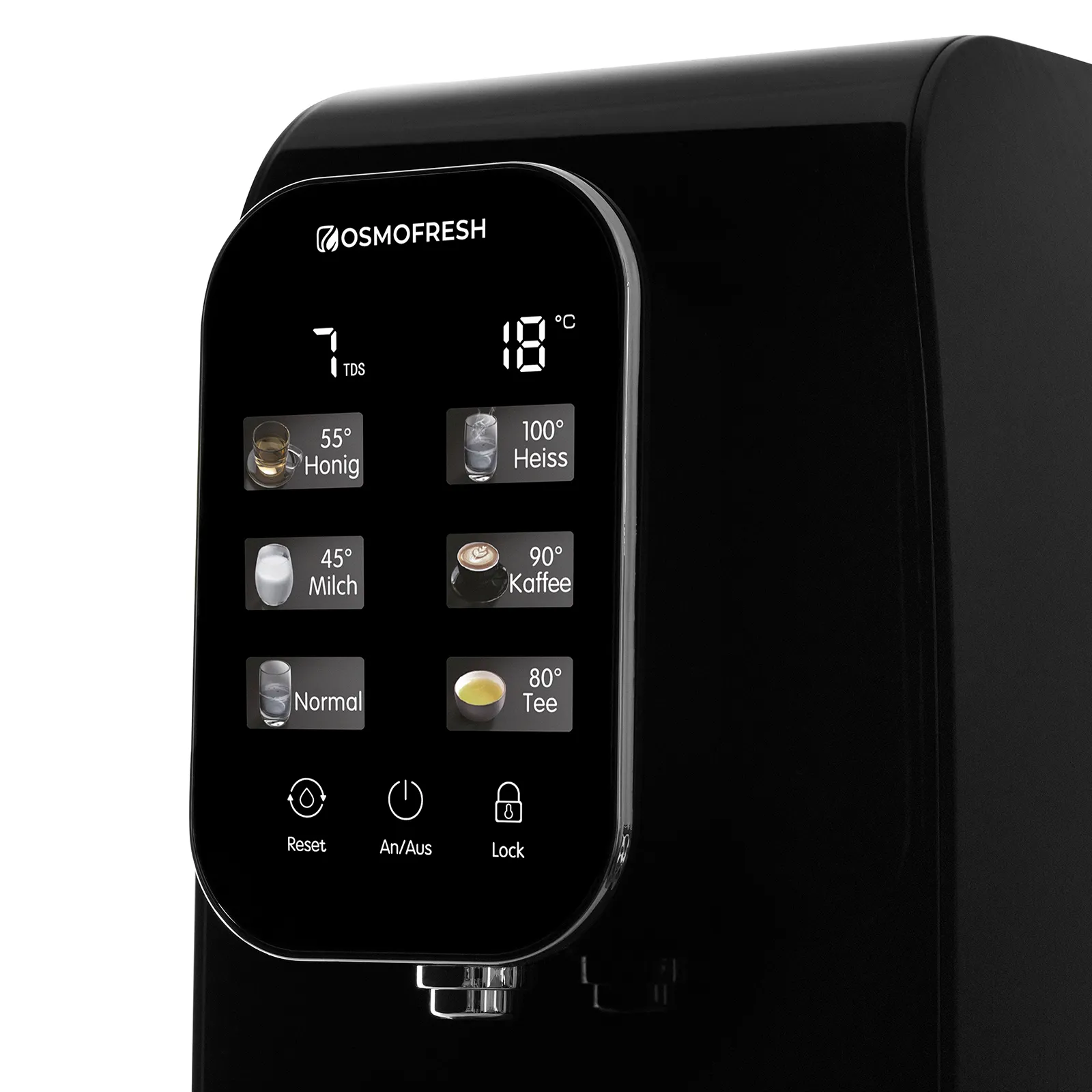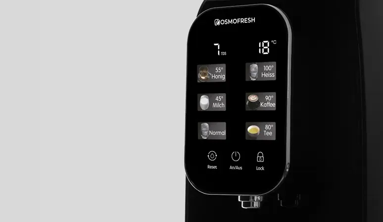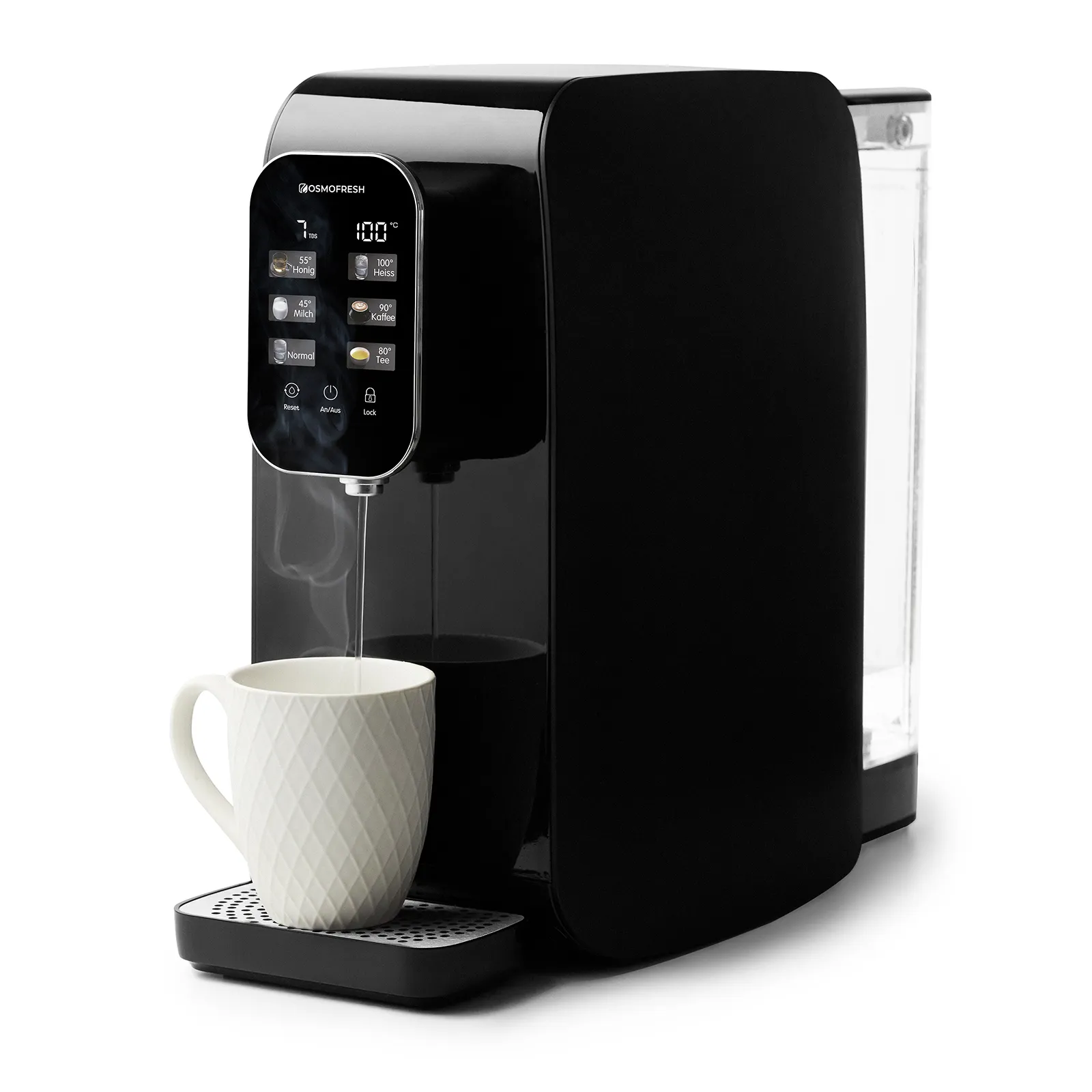 Mit nur einem Fingertipp auf das Touch-Display fließt heißes Wasser in nur 3 Sekunden, ganz ohne Wasserkocher,