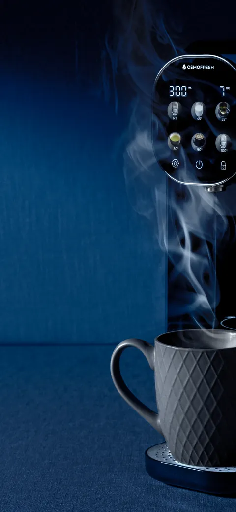 Die Osmose-Technologie ist ein bewährtes physikalisches Verfahren, mit dem du dein Leitungswasser zuverlässig von nahezu allen unerwünschten Stoffen befreist. Mithilfe von Druck und einer Membran werden selbst kleinste Partikel wie Viren, Bakterien, Medikamentenrückstände, Kalk, Fluor, Pestizide, Nitrat, Nitrit, Blei und sogar PFAS-Verbindungen effektiv aus dem Wasser gefiltert -für sauberes und sicheres Trinkwasser direkt aus deiner Quella Pro Osmoseanlage. Und weil reines Wasser allein noch nicht alles ist, sorgt die Quella Pro im nächsten Schritt dafür, dass es auch richtig gut schmeckt. Unsere 7-Stufen-Filtertechnologie entfernt nicht nur Schadstoffe, sondern reichert dein Wasser anschließend wieder mit wichtigen Mineralien an, für ein rundum harmonisches Geschmackserlebnis. Zuletzt durchläuft das fertig gefilterte Wasser noch eine UV-Desinfektion, um mögliche Verkeimungen mit einer 99,9% Sicherheit vorzubeugen.