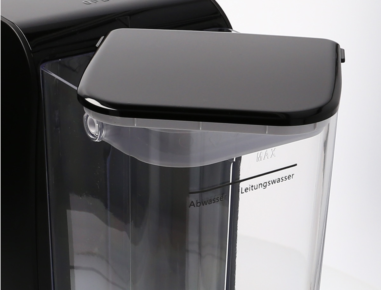 Die Quella Pro filtert Ihr Wasser in einem internen Reinstwasserbehälter vor. Dieser hat ein Fassungsvermögen von etwa 1,7 Liter. Bei Entnahme wird das Wasser nochmal frisch im Nachfilter gefiltert und läuft dann durch den Wasserauslass. Das gedrückt Halten des 100° Buttons entleert das interne Behältnis vollständig.