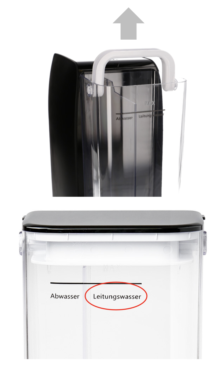 • Klappen Sie den weißen Hebel nach oben und ziehen Sie den Tank gerade nach oben heraus.