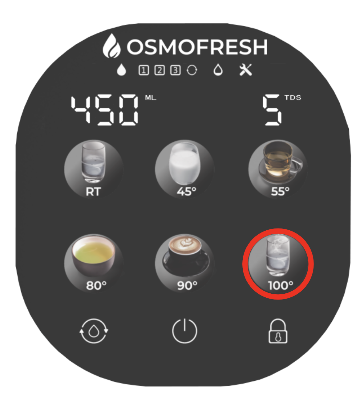 • Halten Sie für etwa 3 Sekunden den Button: „100°“ gedrückt.