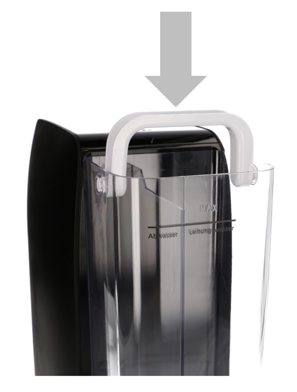 • Stellen Sie den Tank wieder auf die Anlage. Achten Sie darauf, dass der Tank richtig auf der Anlage sitzt (unten bis zum Anschlag und die Haken eingerastet).